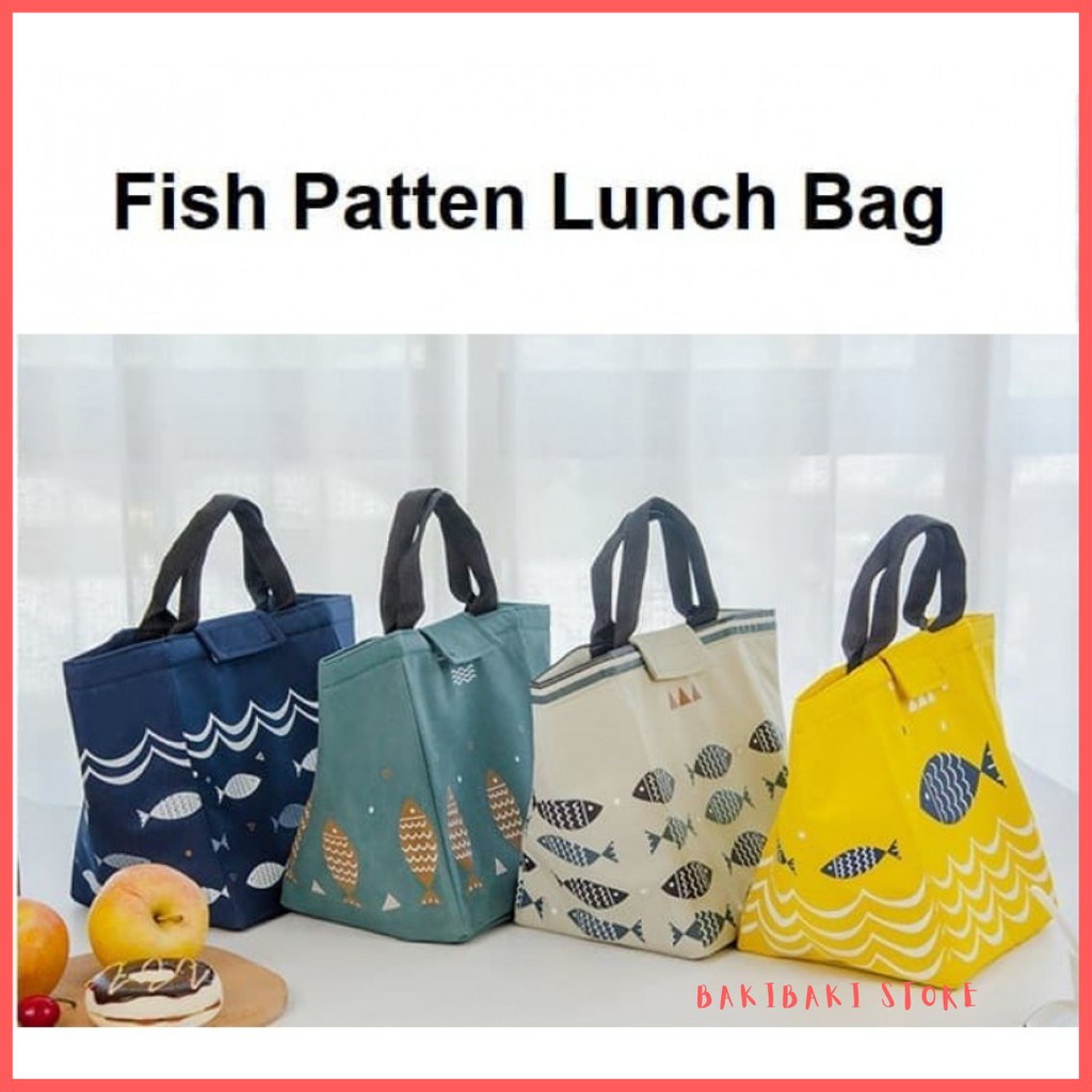 Tas Tempat Makan/ Tempat Makan/ Tas Bekal/ Lunch Bag Motif Ikan/ Cooler Bag/ Tempat Bekal LucuLunch bag motif fish adalah tas bekal dengan motif ikan yang mampu menahan panas atau dingin.Tas ini cocok dibawa berpergian karena mampu menahan panas atau dingin makanan. Bisa untuk tempat bekal makan siang anak ke sekolah atau ke kantor agar panas makanan tetap terjaga. Juga dapat diisi minuman dingin saat berpergian jauh, agar bisa menikmati minuman dingin di perjalanan. Ruang dalam tas cukup luas, muat 3 susun kotak tupperware atau rantang 3 susun atau 6 botol minuman. Berbeda dengan keluaran sebelumnya, model baru ini bahannya jauh lebih tebal, baik bahan luar maupun lapisan penahan panas dingin juga jauh lebih tebal.Bahan : oxford, dengan bagian dalam lapis alumunium foil food grade.Ukuran : 20 x 23,5 x 17Warna :1. Navy 2. Yellow 3. Cream4. Grey*Tanyakan terlebih dahulu kesediaan barang dan variasi barang, apabila tidak bertanya dan stock yang diinginkan kosong maka kami akan menginformasikan melalui chat, apabila tidak ada balasan maka akan kami kirim secara acak.Terima kasih(Bakibaki Stor