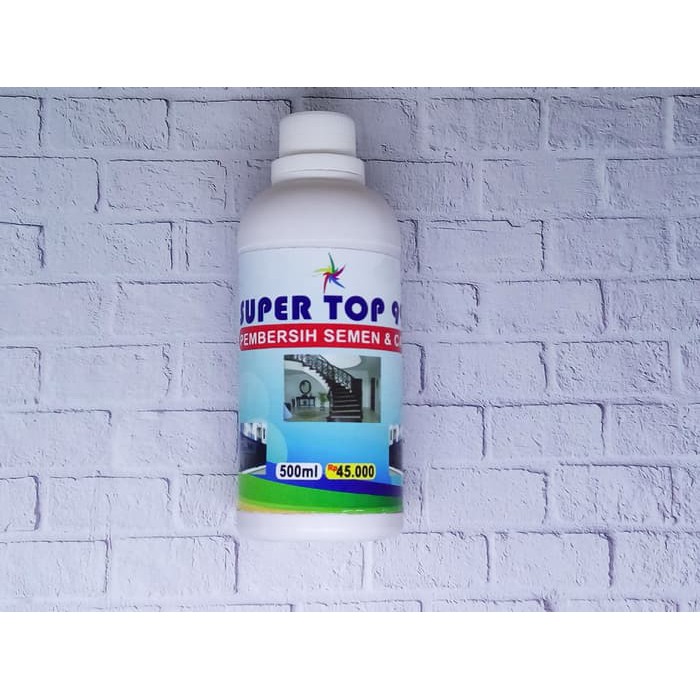 Deskripsi Pembersih Semen dan Cat Super Top 99Super Top 99 Pembersih Semen & CatNetto : 500 mlKEGUNAAN :1. Membersihkan semen yang menempel pada keramik, dinding, pagar dan benda lainnya.2. Membersihkan gundukan semen dijalan-jalan yang sudah mengeras.3. Membersihkan cat yang menempel pada pagar, dinding, sepda atau kendaraan bermotor4. Membersihkan cat yang menempel pada logam, keramik atau lantai.5. Membersihkan noda hitam yang susah dihilangkan seperti aspal yang menempel pada kendaraan atau logam.6. Membersihkan karat-karat pada pagar pintu atau tralisCARA PENGGUNAAN :1. Gunakan wadah / tempat untuk menampung SUPER TOP 99 Agar mudah penggunaan. 2. Kuas-kuaslah atau dengan lap untuk membersihkan semen / cat yang menempel pada dinding / lantai atau benda lainnya.3. Tunggu beberapa saat agar obat bereaksi pada semen yang mengeras, sehingga akan mudah dibersihkan4. Bilaslah dengan air agar sempurna hasilnyaPERINGATAN : Tidak cocok untuk membersihkan cat yang menempel pada kayu atau benda yang berpori-poriJEMLIN STORE*Favoritkan toko kami untuk memudahkan anda mencari perlengkapan untuk rumah anda dan keperluan bahan bangunan Anda. terima kas