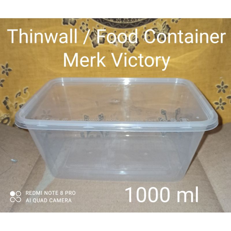 Thinwal Merk VictoryHarga yang tertera per pcsPanjang x lebar atas semua ukuran : 17 cm x 11,5 cmDetail ukuran Tinggi(T) x Panjang Bawah(PB) x Lebar Bawah(LB)* 1000 ml T. 7,5cm ; PB. 14 ; LB. 8,8* Harga sudah termasuk dengan tutupnya*Tutup dijamin rapat*Aman untuk Micromave Oven*Bisa untuk Freezer*Aman untuk makananBarang Ready siap kirim. Baca dahulu deskripsi barang dengan teliti sebelum membeli. Kesalahan membeli bukan tanggung jawab kami. Untuk packing lebih aman kami sarankan untuk menambahkan bubble wrap dari toko kami dihttps://shopee.co.id/product/392988816/11201105371?smtt=0.393008393-1619785488.9NB : Barang yang sudah dikirim sudah melalui pengecekan dan dikirim dalam keadaan bagus. Kerusakan dalam pengiriman bukan tanggung jawab kami. Maka dari itu kami sarankan untuk menambahkan bubble wrap untuk pengiriman lebih aman. Packing kami hanya menggunakan kardus dan plastik pack