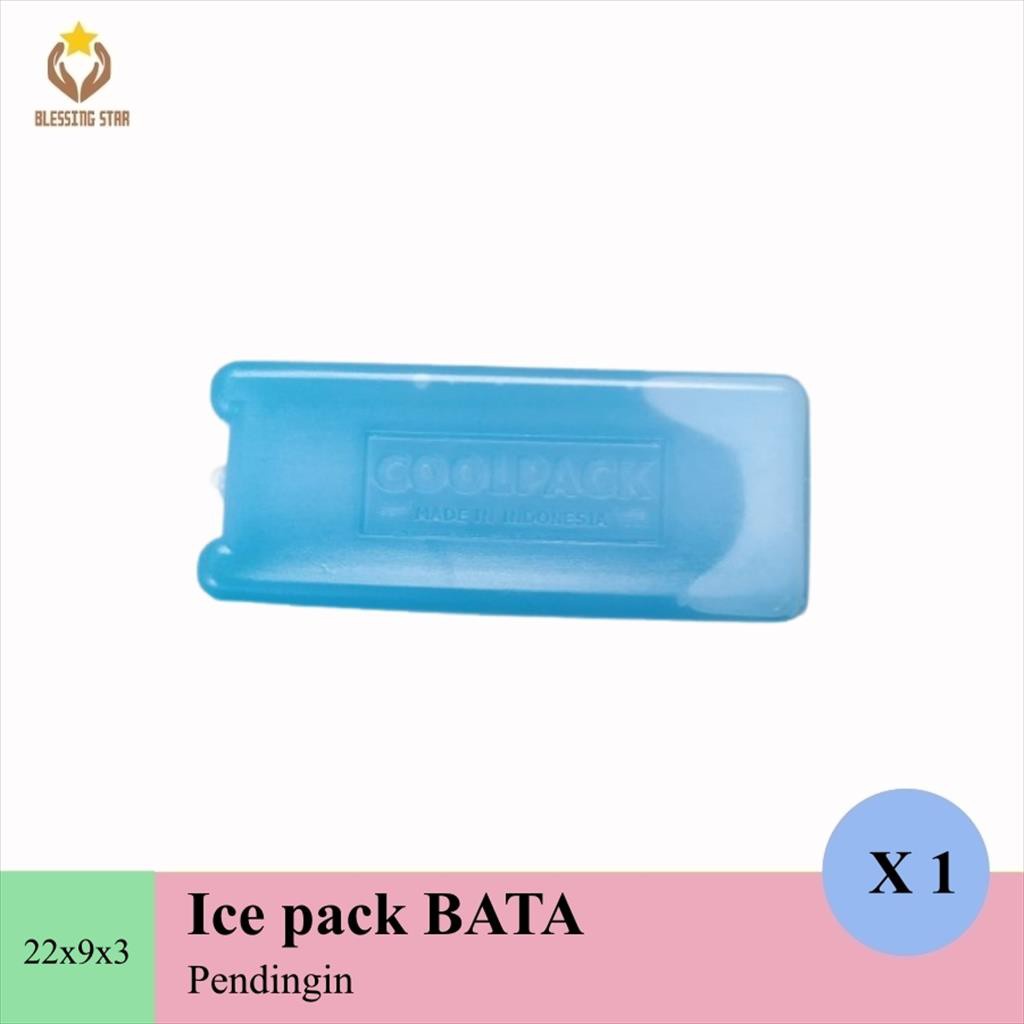 ICE PACK BATA MERK COOLPACK Ice Pack Bata, dengan bentuknya yg tidak terlalu besar, ini sering di gunakan sebagai tambahan media pendingin ketika menggunakan cooler bag dan juga ice box , ataupun box sterofoam. Spesifikasi: Dimensi 22x9x3cmBerat -/