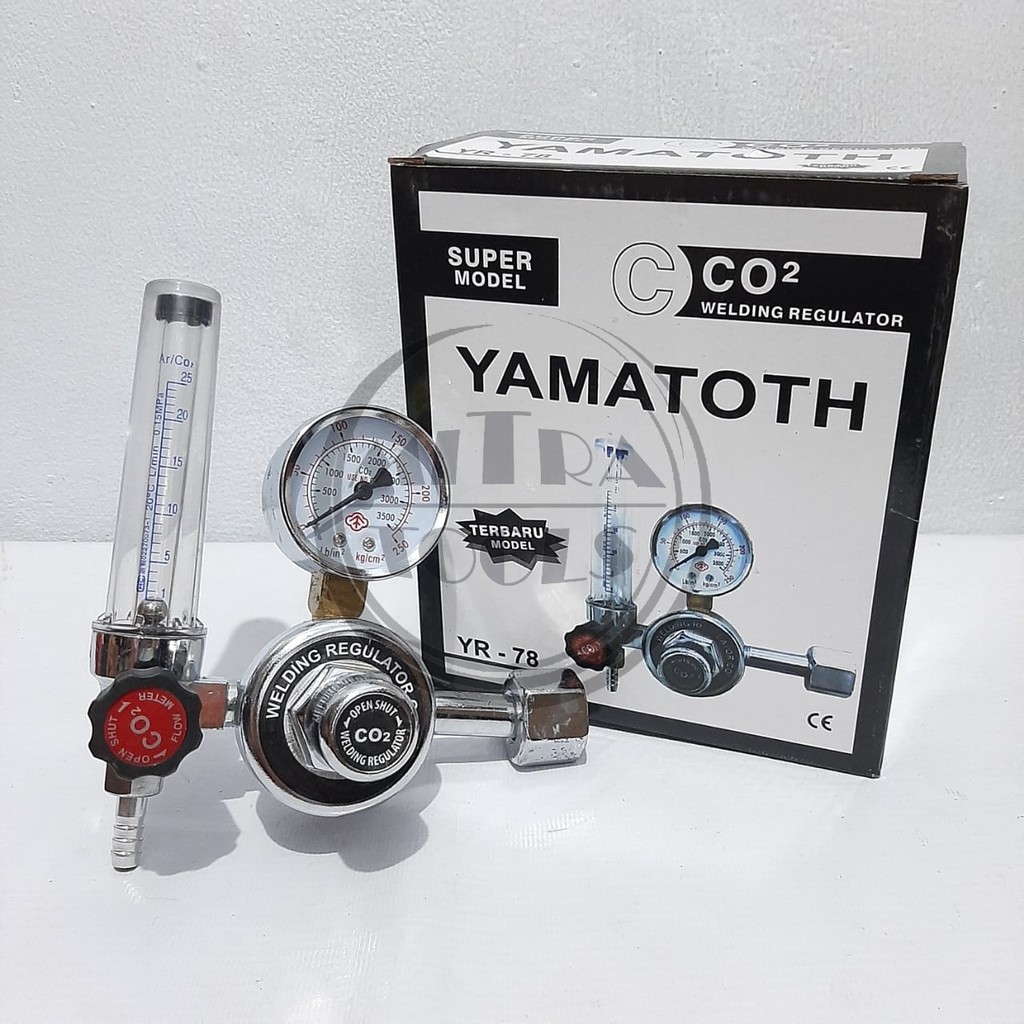 Regulator C0 Merupakan alat untuk mengatur atau mengadjust.Disini regulator Las CO digunakan untuk mengatur tekanan gas sebelum di alirkan ke selang untuk tujuan pengelasan MIG.Regulator adalah katup yang memutuskan dan membuka aliran gas pada tekanan tertentu.Regulator digunakan untuk memungkinkan gas dengan tekanan tinggi dikurangi menjadi tekanan aman digunakan untuk berbagai aplikasi.Cara Pemakaian :Setelah dipasang (dibuka dahulu katup pad tabung tersebut), putarlah katup regulator secara perlahanAtur tekanan saluran keluar pada regulator untuk membersihkan saluran dan untuk mendapatkan tekanan yg diinginkanPeriksa seluruh sambungan dengan memasukan air (air sabun) guna mengetahui kebocoran, jika ada gekembung udara yg keluarLakukan pengaturan final untuk mendapatkan tekanan yang di inginkanSetelah selesai pengerjaan tutup lah katup tersebut dan lakukan pembersihan, pastikan terbebas dari debu, minyak pelumas, dllFitur Produk :Regulator gas CO biasa nya digunakan bersama dengan travo las MIGTerbuat dari bahan berkualitas tinggi tahan karat dan korosiRegulator merupakan bagian yang berfungsi untuk mengatur laju aliran gas dari silinder suplaiRegulator juga memiliki katup untuk mengatur tekanan kerja gas pelindungDilengkapi dengan dua indikator yang masing masing berfungsi untuk mengetahui tekanan kerja gas serta volume gas yang tersisa.Spesifikasi :Merk : YAMATOTHModel : YR-78Type : CO Welding RegulatorRegulator untuk : COWorking Pressure Inlet : 0.250 BarWorking Pressure Outlet : 0.25 Ltr/minInlet Connection : 5/8"x14GOulet Connection : Selang ukuran 3/8"Highlight Produk :Kualitas terjaminHarga terjangkauCocok untuk industri otomotif dan peralatan tukan