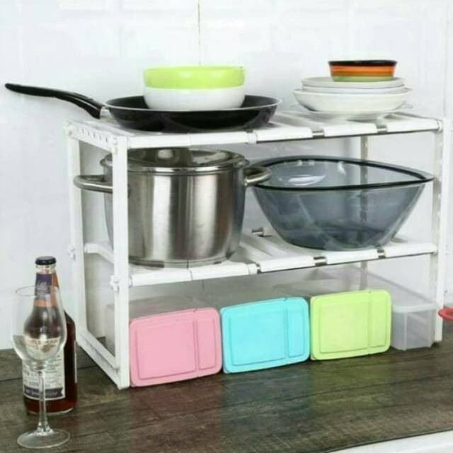 Deskripsi RAK DAPUR PANCI/PIRING BAWAH WASTAFEL 2 SUSUNRak Panci bahan stainless steel sangat cocok diletakkan di bawah wastafel. Fungsinya serbaguna antara lain bisa buat simpan panci, tempat bumbu dapur, Teflon, wajan, dll.Terdapat lubang di tengah rak untuk memudahkan selang wastafel masuk , sehingga cocok banget diletakkan di bawah wastafel buat wadah alat-alat perkakas dapur.Interior dapur ini berukuran : panjang 70 cm x lebar 26 cm x tinggi 38 cm. Warna dasar Rak Susun Panci p