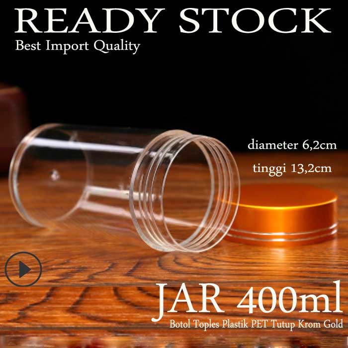 Selamat datang di Toko Achi house Kami menyediakan segala jenis kemasan botol plastik dan botol kaca. Harga yang ada di toko tersedai harga satuan dan harga grosir.Minimal pembelian satuan 3pc Tersedia harga grosiran lebih murah 12pc-60pc-120pc-600pc . Silakan cek harga grosir yang ada ini.Botol Toples TinggiBahan Plastik PET SOLID TEBALTutup Krom Gold ( Kualitas Bagus)Awet dalam pemakaian Drat Putar Anti BOCORVolume 400mlTinggi 13,2cmDiameter 6,2cmProduk asli sesuai gambar. High Good Quality Products.Kirim banyak barang sedia kargo murah : Dakota / REX / JNETRUCK / Deliveree.Ready Stock - Dapat langsung DiorderPacking AmanSilakan dio