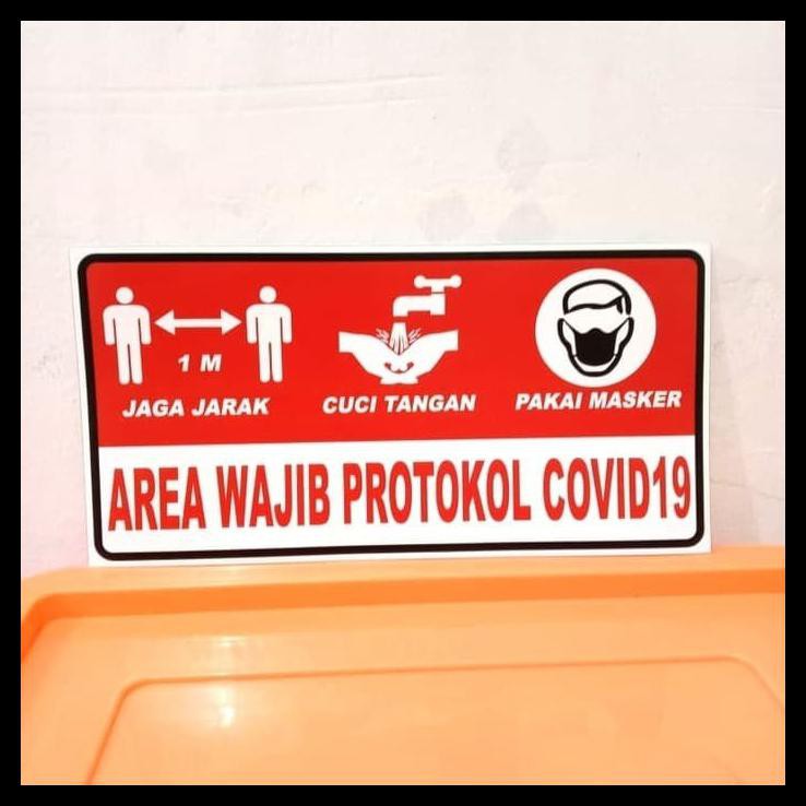 Name: Sign Sticker K3 Rambu Area Wajib Protokol Covid 19 Safety Uk 15x10cm - Merah