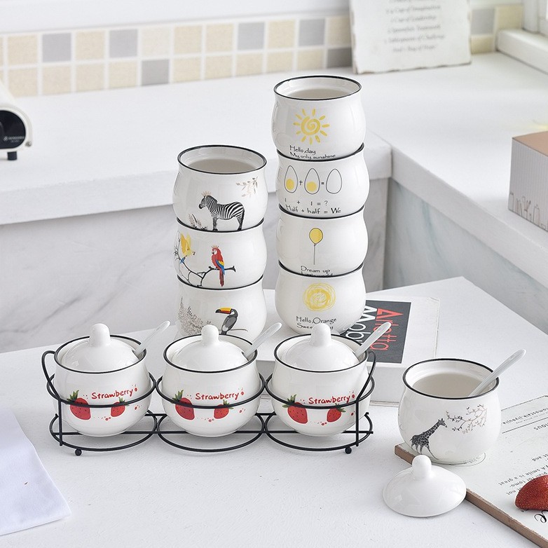 SELAMAT BERBELANJA DI SESEBI 。◕‿◕。Deskripsi produk :Bahan : Keramik + BesiIsi : 1set ( 3pcs tempat bumbu + sendok + rak besi )Ukuran : 10 x 30 x 9cmBerat : 1kgTerima kasih╭ (