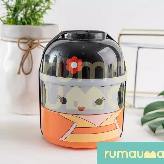 Name: Kualitas Terbaik] Rumauma Lunch Box Orange Girl Kawai Bento Kotak Makan 2 Susun Anak - Girl Kawai